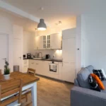 Situé au 1er étage, cet appartement d'une chambre donne sur la cour et dispose d'un balcon privé. Il se compose d'un salon et d'une cuisine ouverte équipée d'un lave-linge et d'un lave-vaisselle. La chambre dispose d'un lit double et d'une salle de bain avec douche et WC. Elle est équipée d'une télévision, d'un lecteur DVD et du Wifi gratuit.